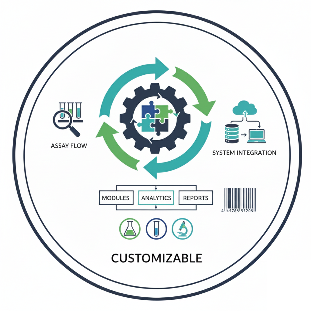 Integrates with lab devices like Biochemistry Analyzer, CBC, ELISA, RT-PCR, Hormone analyzers etc.